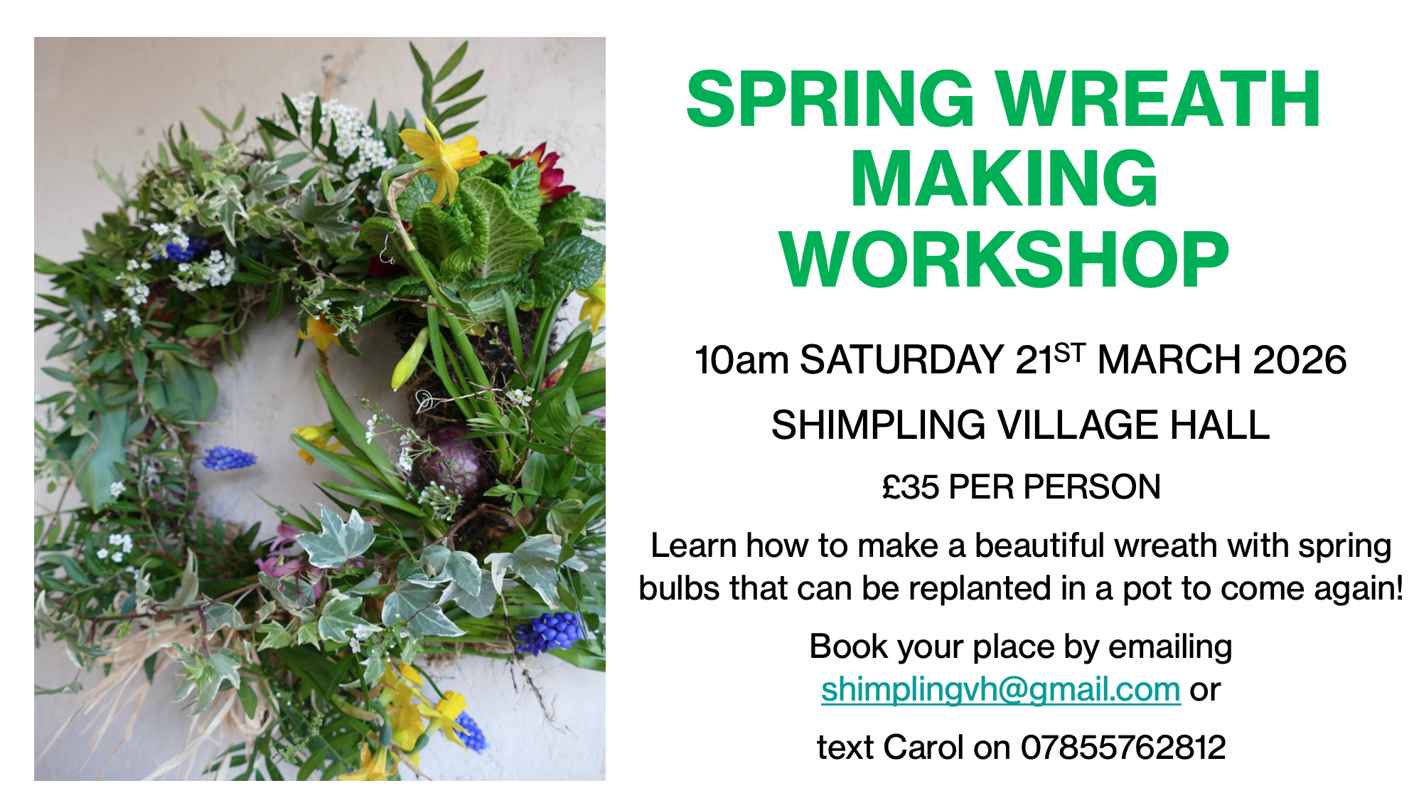 SPRING WREATH MAKING WORKSHOP - come and learn how to make wreaths to adorn your door any time of the year