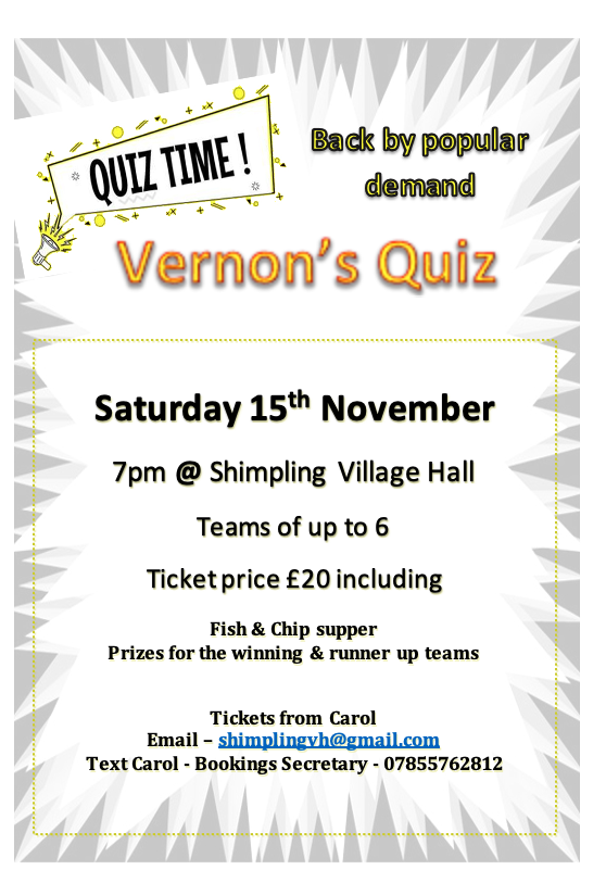 VERNONS QUIZ NIGHT - form a team and join in the fun FISH & CHIP SUPPER included £25